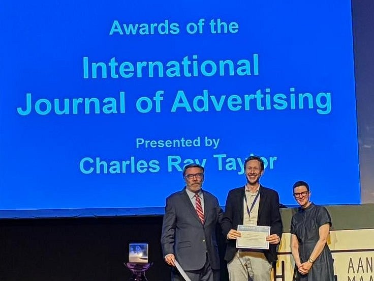 Im Rahmen des Gala Dinners der diesjährigen International Conference on Research in Advertising (ICORIA) in Rotterdam wurde Dr. Julian Felix Kopka mit dem Rising Star Award des International Journal of Advertising ausgezeichnet. Die Auszeichnung wurde ihm von Prof. Charles R. “Ray” Taylor, dem Editor-in-Chief des Journals und einem der führenden Köpfe der internationalen Marketing- und Werbeforschung, überreicht. Mit dem Rising Star Award würdigt das International Journal of Advertising junge Nachwuchswissenschaftlerinnen und -wissenschaftler, die durch herausragende wissenschaftliche Beiträge und ihr besonderes Engagement als Reviewer zur internationalen Werbeforschung beitragen.